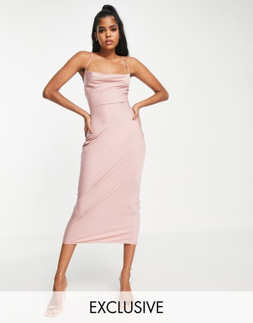 Product Name: Rose strappy satin cowl midi dress outlet